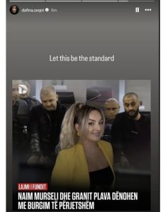 Ajo në postim në InstaStory shkroi: “Le të jetë ku standardi”.