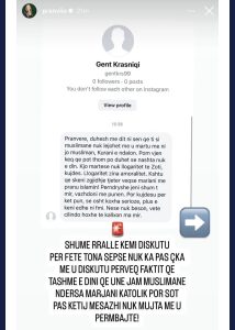 Një ndjekës i saj e kritikoi publikisht, duke e quajtur lidhjen e tyre si “imoralitet” për shkak të feve të ndryshme. Pranvera, e cila është myslimane, e mori këtë mesazh si një thirrje për të shpjeguar se feja është një çështje personale dhe se çdo individ ka të drejtën të zgjedhë për veten e tij.
